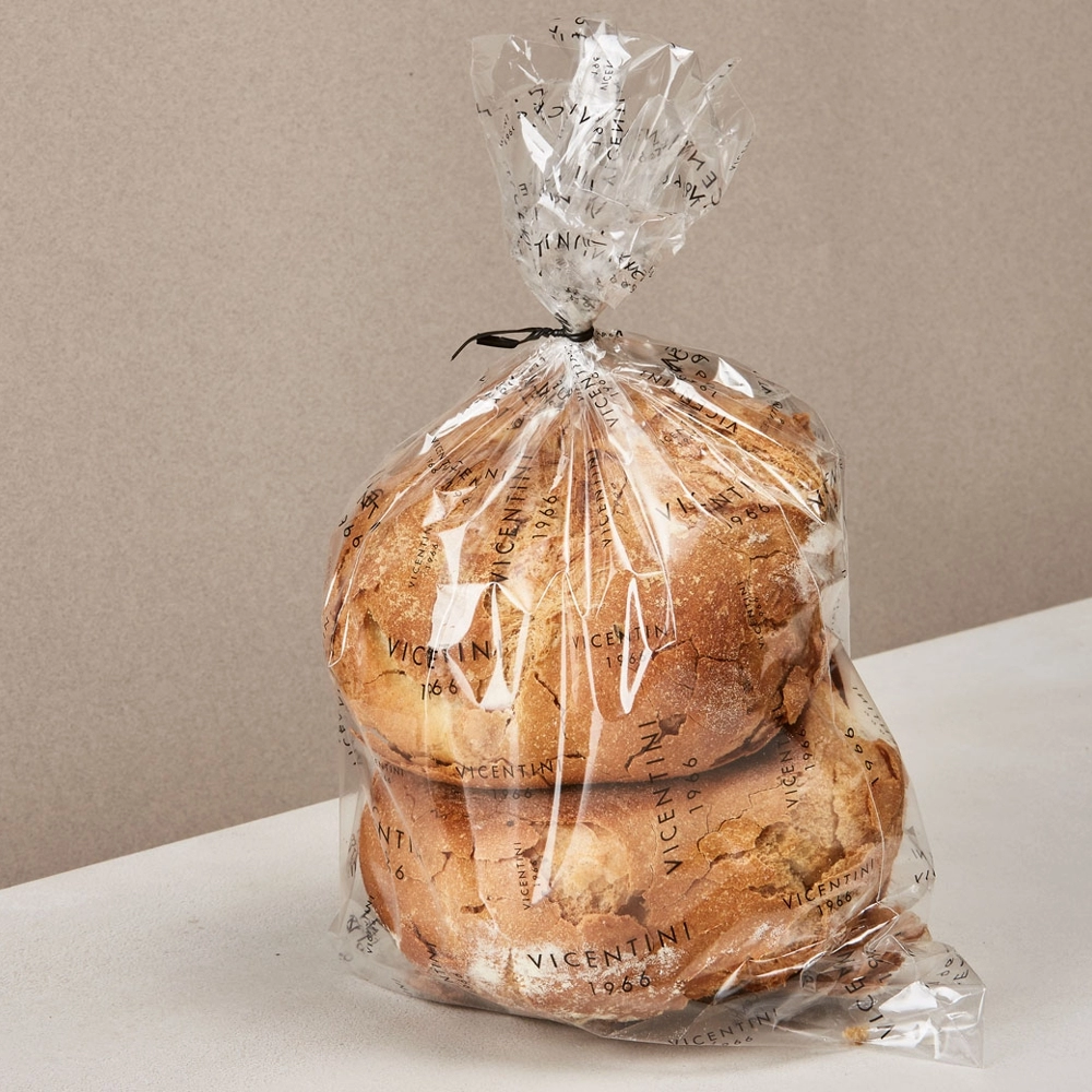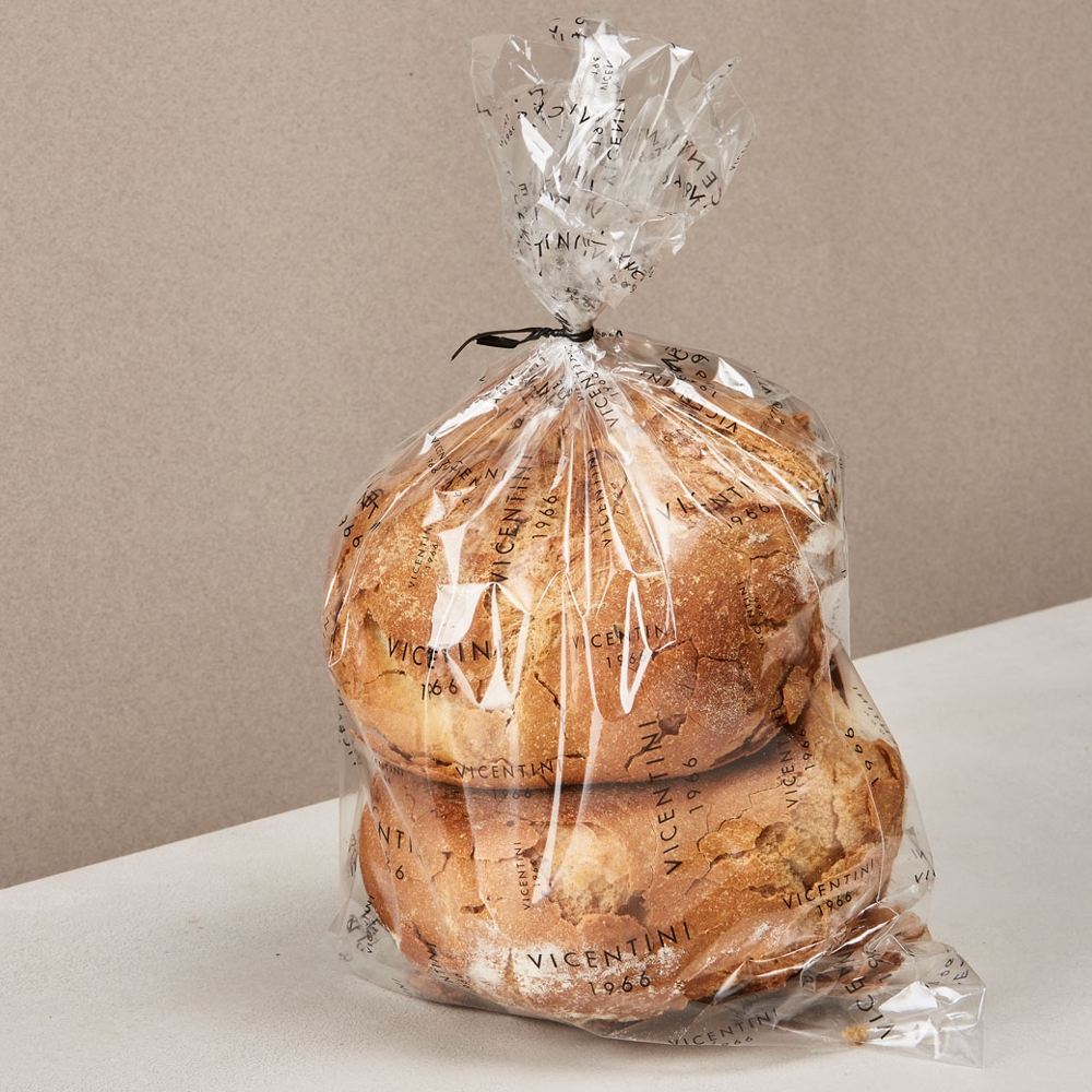 Il pane biscotto per antonomasia. Con lievito madre che il panificio Vicentini "cura" con passione da oltre trent'anni. Questo pilastro della panetteria vicentina, si distingue per semplicità. La doppia cottura garantisce una croccantezza inconfondibile. Perfetto da intingere nel latte o caffelatte perchè assorbe i liquidi senza sfaldarsi. Può accompagnare salumi e formaggi, offrendo un contrasto di consistenze e un sapore neutro che non copre gli altri.
