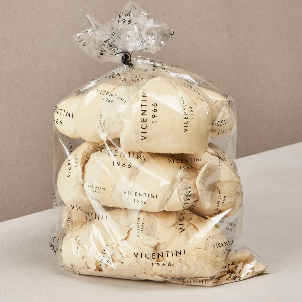 Il Pan Biscotto, che affonda le radici nella tradizione vicentina, evoca subito un senso di autenticità e sapore antico. Questo pilastro della panetteria vicentina, si distingue per semplicità. La doppia cottura garantisce una croccantezza inconfondibile. Perfetto da intingere nel latte o caffelatte perhè assorbe i liquidi senza sfaldarsi. Può accompagnare salumi e formaggi, offrendo un contrasto di consistenze e un sapore neutro che non copre gli altri ingredienti.