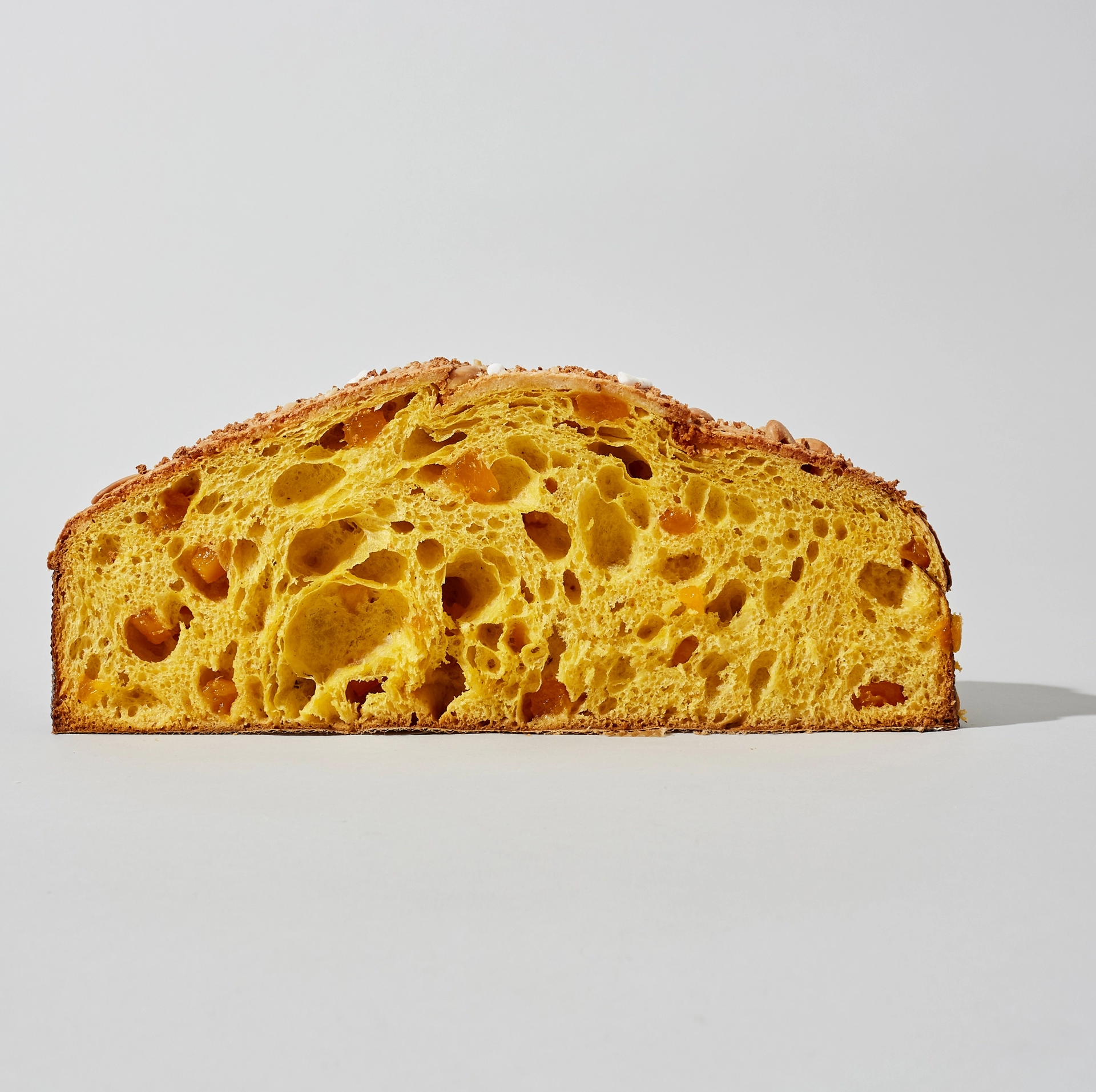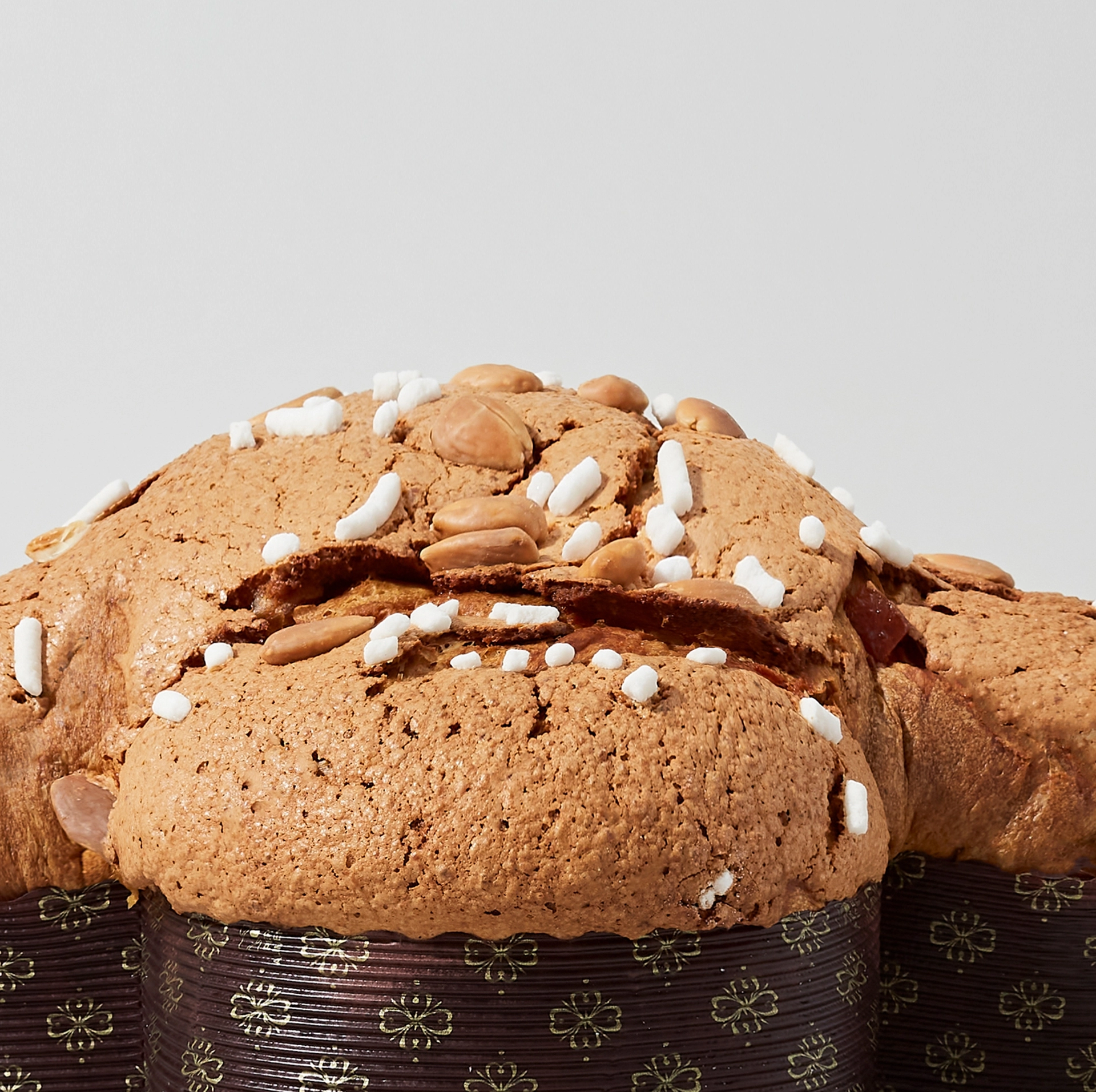 Tale metodo permette ai lieviti giovani di conferire una sofficità ineguagliabile e un profumo di bouquet aromatico intenso e fragrante che è una delle caratteristiche distintive di questo lievitato. Croccante copertura di glassa con poco zucchero per esaltare mandorle e nocciole Disponibile nei formati da 600 gr e da 900 gr. ì